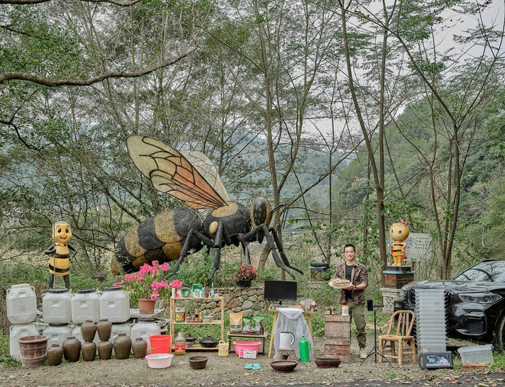 I have been making my long-term project "Family Stuff" series for 20 years, which now includes 160 photographs. I gather a family’s belongings from different spaces in the home and arrange them in one place to take a photograph with the family members. Most of these photos are taken outdoors, with the home as the background. Ninety percent of my previous works were shot in China during a time of rapid economic development, modernization and globalization. I used this method of staged photographs to record history. In the photos, a household’s real interior space is briefly exposed in an external space; also can be seen are environment changes, urban expansion, technological advancements and shifts in people's lifestyles. Through static documentation of the above, I create a dynamic social panorama.